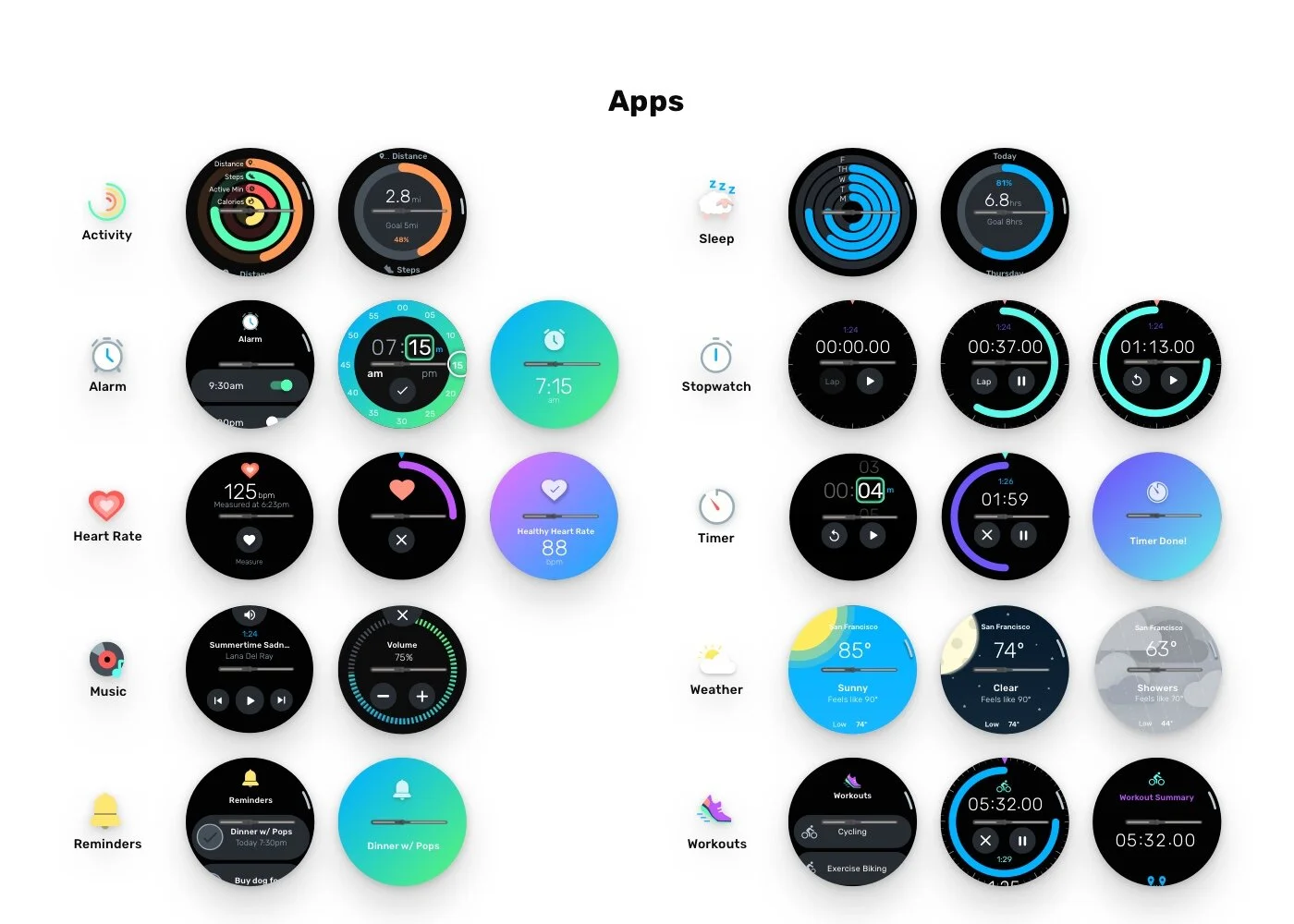 Designing custom watch faces was the most expressive part of the project, letting me fully flex my artistic side. I crafted a range of faces, from eccentric and playful to sporty and streamlined, so the watch could feel accessible to anyone, giving users the freedom to switch designs to match their mood or activity.